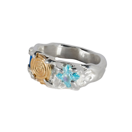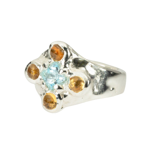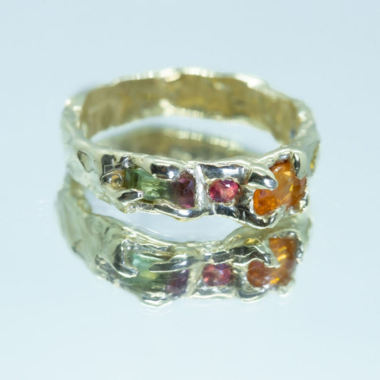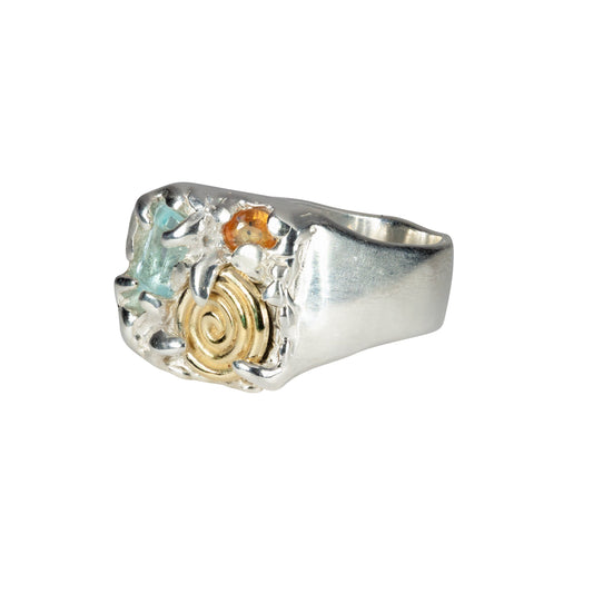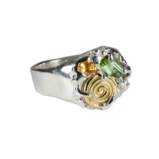 14kt Gold Spiral Ring With Tourmaline & Citrine.